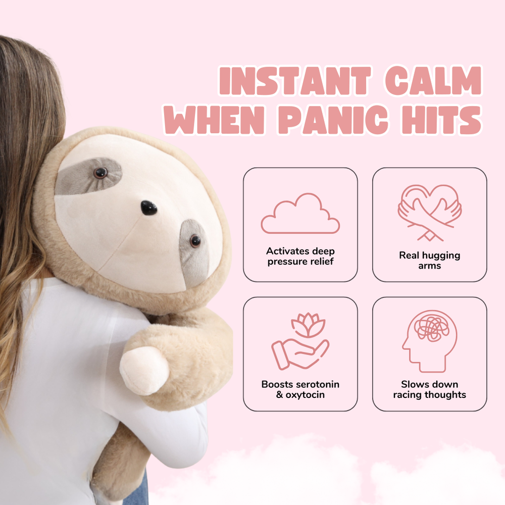 The gentle hugging arms and soft pressure help your body release tension and feel safe - similar to the calming effect of a real hug. It’s a simple, soothing way to slow down when life feels overwhelming.